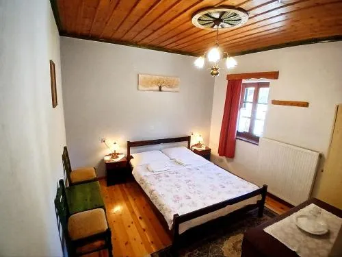 Δίκλινο Δωμάτιο - με 1 διπλό ή 2 μονά κρεβάτιαΦωτεινό και ευάερο δωμάτιο με θέα στο βουνό, την κοιλάδα ή το χωριό. Διαθέτει ξύλινα πατώματα και οροφή. Οι παροχές του δωματίου περιλαμβάνουν θέρμανση, τηλεόραση και ψυγείο.